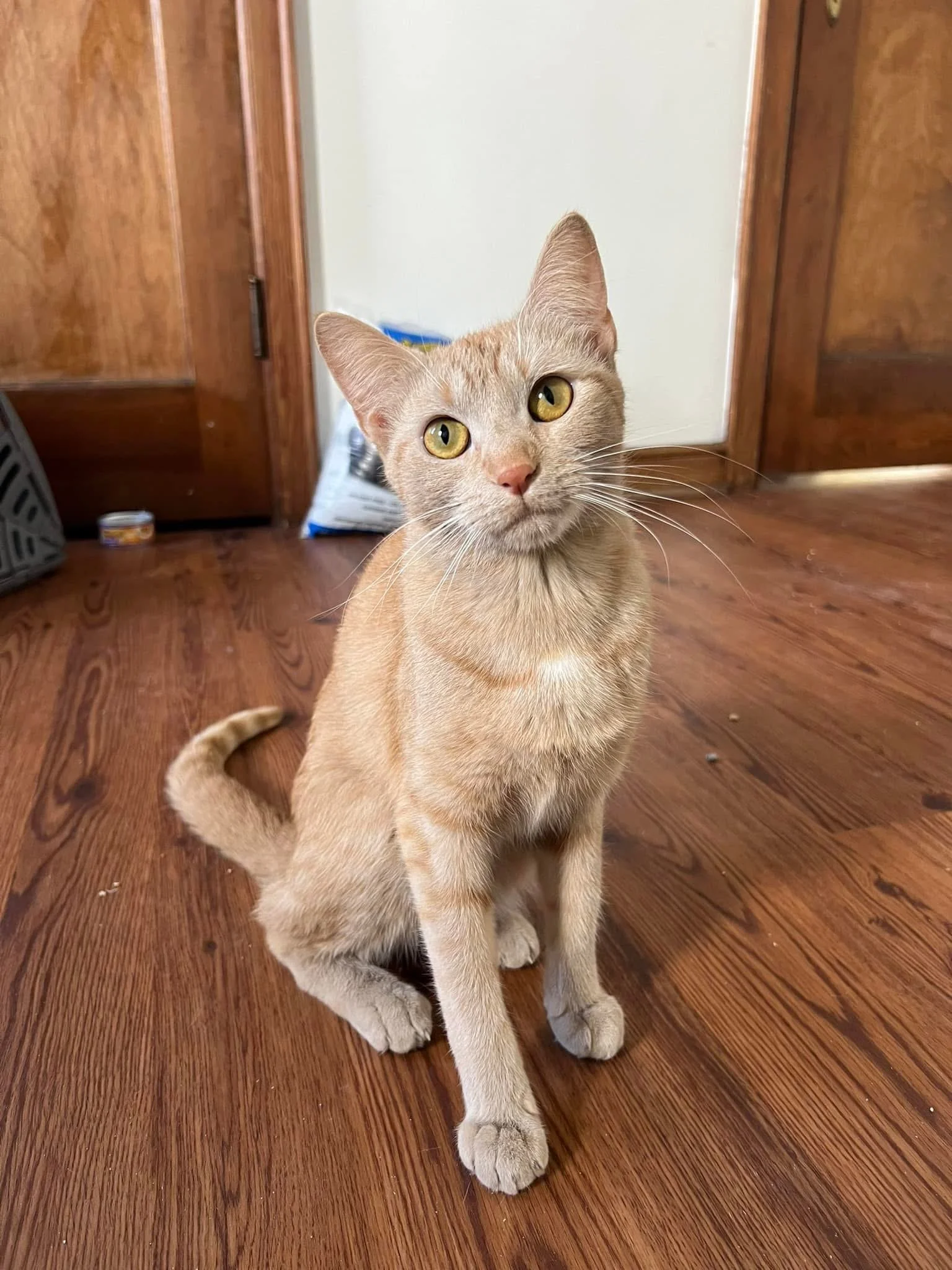 We were asked to take Paprika after she was surrendered to the shelter due to her family becoming homeless. She was declining rapidly in the shelter, but had never lived outdoors so wasn’t a candidate for TNR. When we got Paprika, we were her worst enemies. She was terrified and wasn’t afraid to show it. She was sent to the perfect foster home, who helped her get comfortable in a new environment and let her personality shine through. She was adopted by the perfect person, and they have spent countless hours making her feel comfortable!